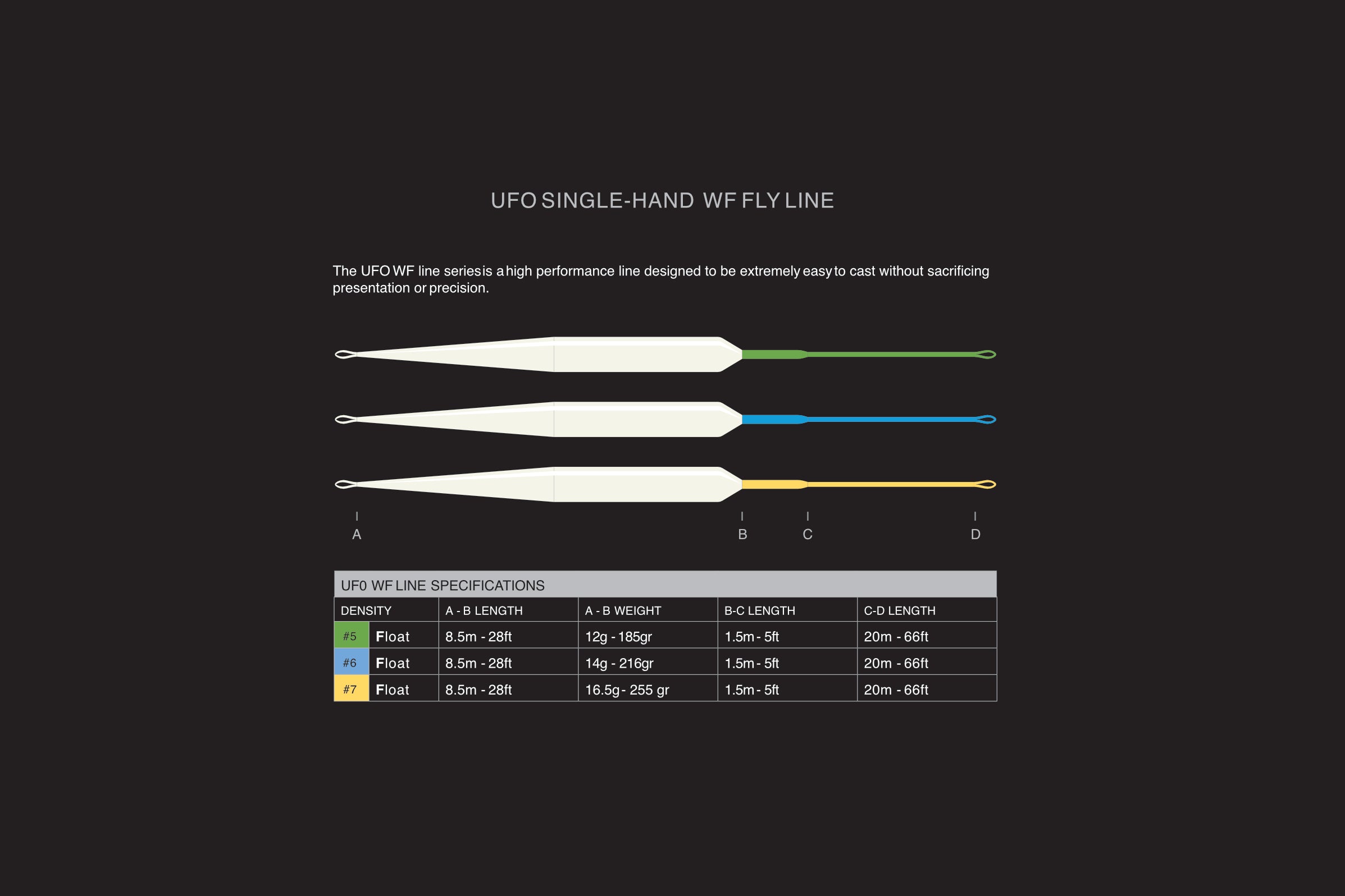 UFO single-hand lines work very well with any rod brand but were specifically engineered to complement our SOLID S1 series. Simply pair your rod with the matching line weight and forget about calculating grains or grams. Your #5-weight S1 rod and # the 5-weight UFO line is a guaranteed perfect match.